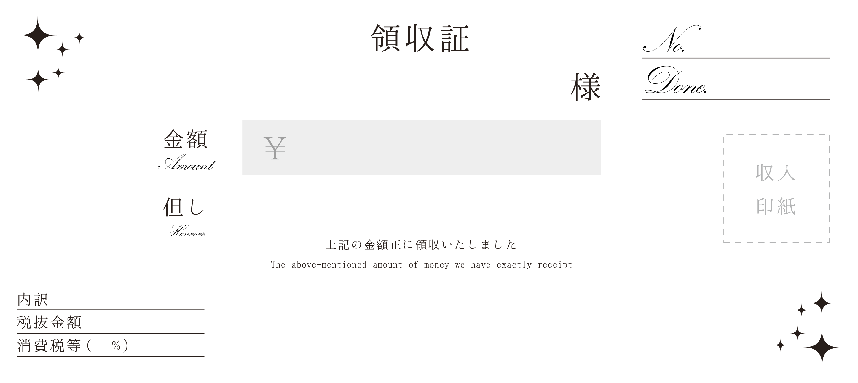 「キラキラの領収証」(210×94mm)横01のハンドメイド画像素材